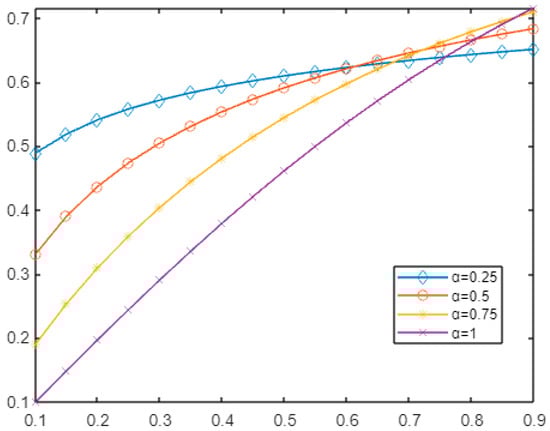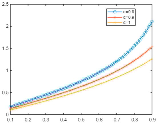 As can be seen from Figure 3, Figure 5 and Figure 7, the numerical solutions for the fractional values of approach the solution obtained for as approaches 1, which verifies the solutions obtained for fractional values.