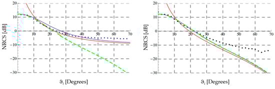 - Johnson, J.T.; Shinan, R.T.; Kong, J.A.; Tsang, L.; Pak, K. A Numerical Study of the Composite Surface Model for Ocean Backscattering. IEEE Trans. Geosci. Remote Sens. 1998, 36, 72–83. [Google Scholar] [CrossRef]