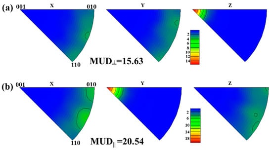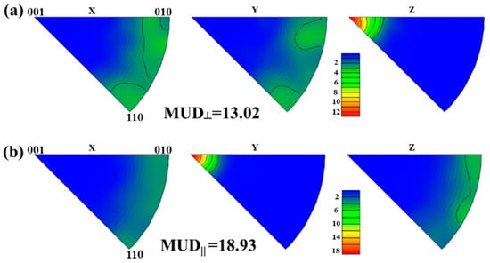 Inverse pole figures (IPFs) of S1 surface perpendicular to c-axis direction (a) parallel to c-axis direction (b).