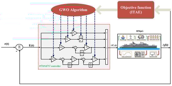 Structure of the proposed optimal PIλDND2N2 controller-based GWO for the studied HMGS.