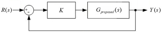 Design of a PID controller for the fractional-order transfer function as in Equation (53) is as follows: Routh-Hurwitz stability criterion cannot be applied for fractional-order transfer functions. However, the Routh-Hurwitz criterion can be successfully applied to the integer-order approximate transfer function derived by using the proposed method. Additionally, PID controller design can be done easily using Ziegler-Nichols method. For the design method, the process is taken to closed-loop proportional control (), as in Figure 11, and the closed-loop transfer function of the system is written as Equation (56).