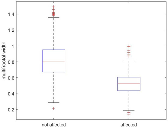 Table 1 shows the average, the standard deviation, and the minimum and maximum of each multifractal and informational parameter for both the infected and uninfected areas.