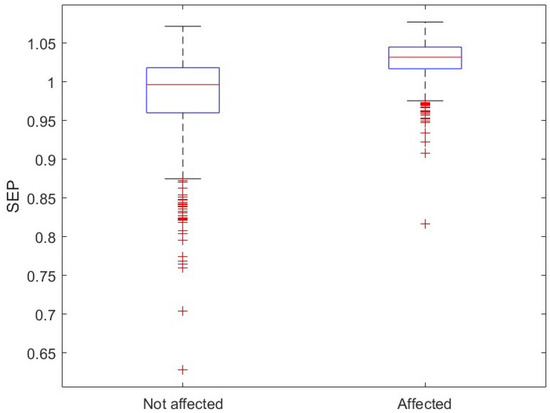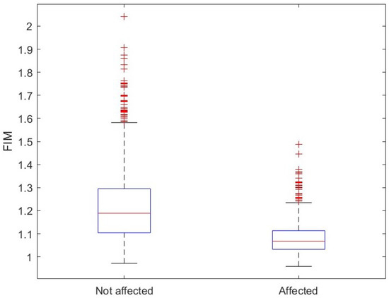 Moreover, we applied the Fisher–Shannon analysis and calculated the FIM and the for the investigated pixel time series of both types of area. Figure 13 and Figure 14 show the boxplots of the two informational quantities.