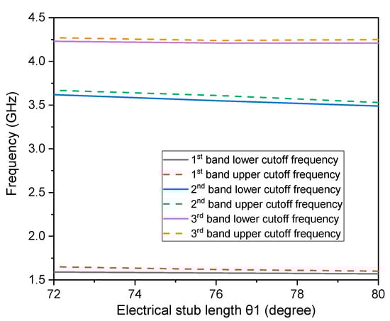 Variations in cut-off frequencies w.r.t electrical length θ1.