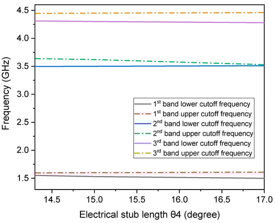 Variations in cut-off frequencies w.r.t electrical length θ4.