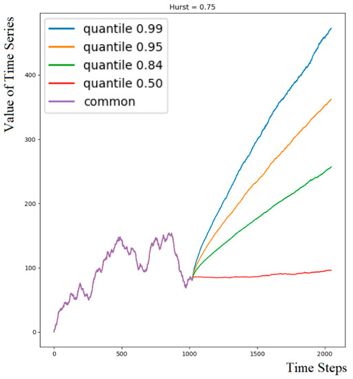 According to reviews [31,33,34], there are two broad classes of probabilistic methods: those predicting the parameters of a predefined distribution shape, and those addressing the problem when the distribution shape is not specified. Although the first class of methods is perfectly suitable for predicting fractional Brownian motion, this research aims to explore methods that are not limited by a predefined probability distribution shape and are applicable to studying complex fractal time series.