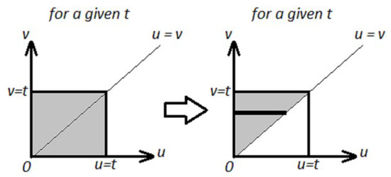We can notice the symmetry of the integral (37) with respect to parameters u and v and also with respect to the region of integration, see Figure 1.