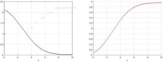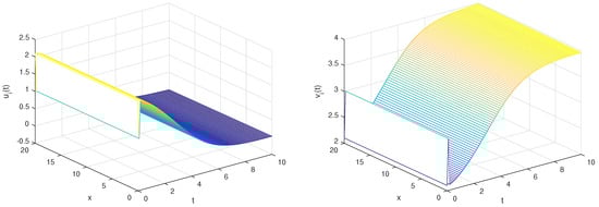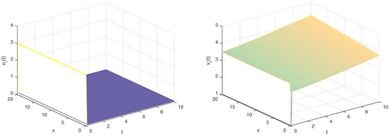 To demonstrate our point, we consider the following parameter values: and and the boundary conditions . Also, we provide the following appropriate initial conditions: