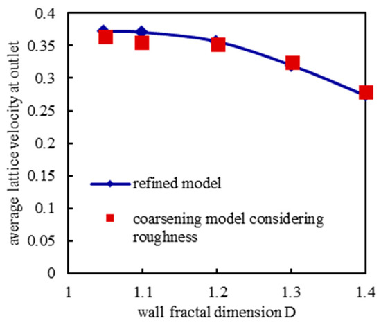 The outlet lattice velocity at average wall height of the surface under different fractal dimensions.