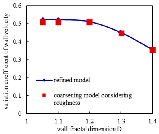 The wall velocity variation coefficient under different fractal dimensions.