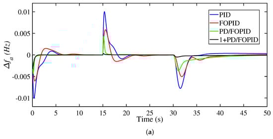 The FO-based frequency regulator systems are based on FO calculus and representations of non-integer systems. There are several schemes provided in the literature, such as Grunwald–Letnikov, Riemann–Liouville, and Caputo []. The FO-based derivative for function f between a and t is defined using the Grunwald–Letnikov method: