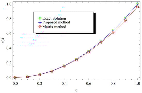 Substituting from (25)–(27) into (23), we arrive at a set of algebraic equations with a variable that can be solved for C; then, we substitute in (25) to get the semi-analytic solution. It is to be noted that the obtained solution is more accurate than that of the previous results, which means that our technique using Bernoulli wavelets is more accurate and efficient. As seen below, we provide our algorithm in the following simple and unambiguous phases that may be simply programmed as follows: