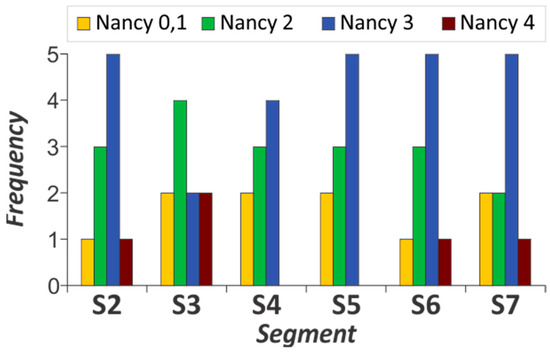 S7-S6, S7-S5, S7-S3, S7-S2 (p < 0.013)