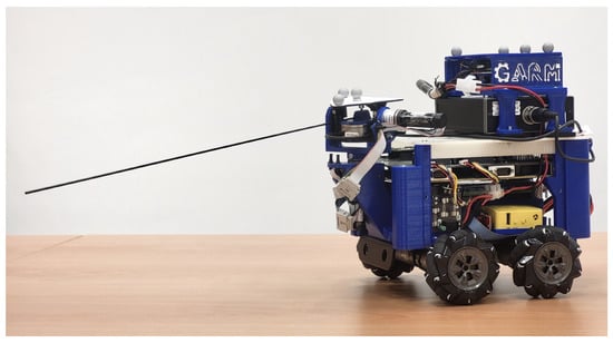 The “sensing antenna” has become the most popular among these sensors because it is a robust and compact device. It is an active sensor composed of a very slender flexible beam, which is moved by two servo-controlled motors, and a load cell placed between the beam and the motors. This device replicates the touch sensors that some animals possess and performs an active sensing strategy in which the servomotor system moves the beam back and forth until it hits an object. At this instant, information on the motor angles, combined with force and torque measurements, allows us to calculate the positions of the contact points, providing valuable information about the object surface. Thus, a 3D map of the surface of an object can be obtained using this device, enabling its recognition. Two strategies can be applied to obtain such 3D maps. The first one is to keep moving the beam back and forth in order to hit the object at different points, allowing for the determination of their 3D coordinates and, subsequently, extracting the map of the object surface. This procedure is carried out by some insects that use their antennae for this purpose (e.g., []). The other strategy is to slide the beam across the object, exerting a controlled force on the surface of the object in order to maintain contact, and collect the 3D coordinates of points on the object surface during this movement. This approach is utilized by some mammals that have whiskers as sensors (e.g., []). Both of these strategies can be implemented using the aforementioned sensing antennae.