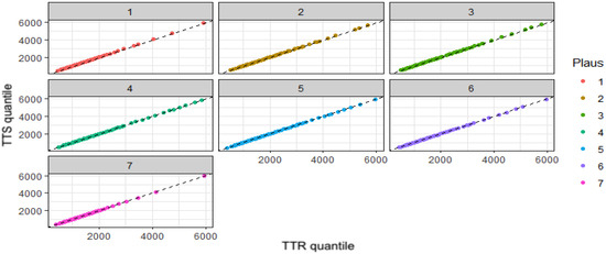 - Fractile plots to compare distributions of TTR and TTS in each level of Plaus.
