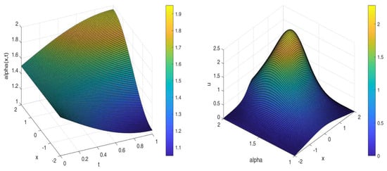 5.3. Space Variable-Order Fractional Fisher Equation in One Dimension