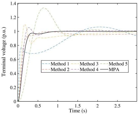 - Sahu, B.K.; Panda, S.; Mohanty, P.K.; Mishra, N. Robust analysis and design of PID controlled AVR system using Pattern Search algorithm. In Proceedings of the 2012 IEEE International Conference on Power Electronics, Drives and Energy Systems (PEDES), Bengaluru, India, 16–19 December 2012; pp. 1–6. [Google Scholar] [CrossRef]