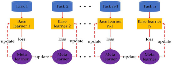 In this work, we incorporate unit-to-unit variability into the training of the drift term with the meta-LSTM model. In the meta-LSTM model, the base LSTM learners can learn the individual degradation trend features. With the losses of the different base LSTM learners, the meta LSTM learner can reach a general representation of the degradation trends with unit-to-unit variability. The computational structure of the meta-LSTM model is provided in Figure 7. Each of the learners in Figure 7 is an LSTM model.