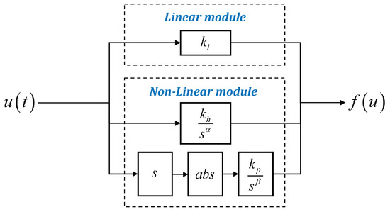 Therefore, in modeling the hysteresis effects of the PEA, the proposed fractional-order model is also divided into two parts, namely the linear module and the nonlinear module, to predict the linear and hysteresis components separately. The structure of the FOH model is shown in Figure 5.
