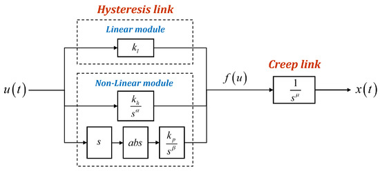 In this section, based on the newly proposed FOH model and the just-reviewed fractional-order creep dynamic model, a novel hysteresis and creep-coupled model is proposed. Its cascade structure is shown in Figure 7.