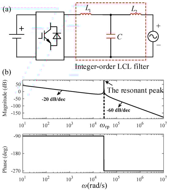 The main circuit topology and Bode plot of an integer-order LCL filter. (a) A grid-connected inverter with an integer-order LCL filter. (b) The Bode plot of an integer-order LCL filter.