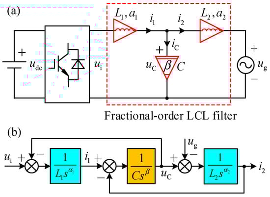 According to (3), we obtain the model structure of a fractional-order LCL filter, as shown in Figure 2b.