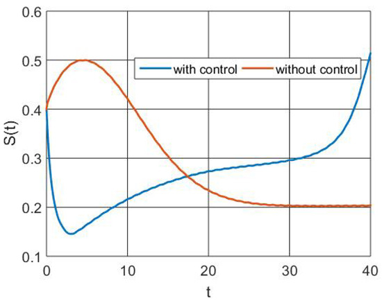 The trends in the sensitive population size without and with control actions are shown in Figure 3. Additionally, the figure shows how the availability of an efficient vaccine aids susceptible populations in building immunity and moving on to another class. However, a recent increase in the number of susceptible people is due to lack of vaccination.