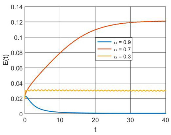where stands for the one-parameter Mittag–Leffler function. In Equation (7), if for any time t, we have the following result: