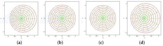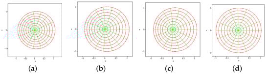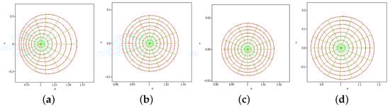 Mappings of over provided in Example 6. (a) Mapping of over ; (b) mapping of over ; (c) mapping of over ; (d) mapping of over .