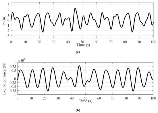 The generated elevation of sea waves and the corresponding excitation force based on the Bretschneider spectrum is shown in Figure 1 [40].