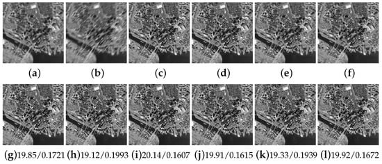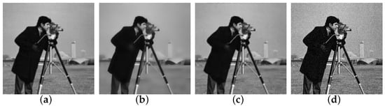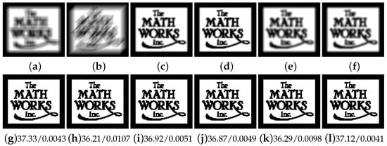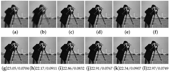Image deblurring is a critical concern in image processing, as noted in sources [,,,]. There have been substantial achievements in a variety of fields up until now, such as communications, biomedical engineering, medical imaging analysis and so on. However, due to its ill-posed nature, no explicit closed-form solution exists. In general, the process of image blurring is considered as the convolution of a clear image with a shift-invariant kernel plus noise, i.e.,