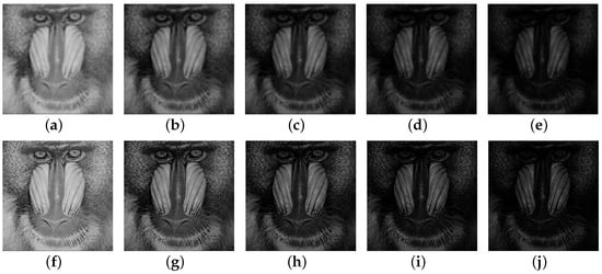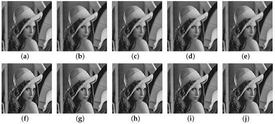 To illustrate the characteristics of fractional methods in image processing, our review the total -order variation, as documented in publications [,]. For some other applications of fractional-order methods, readers can refer to references [,].