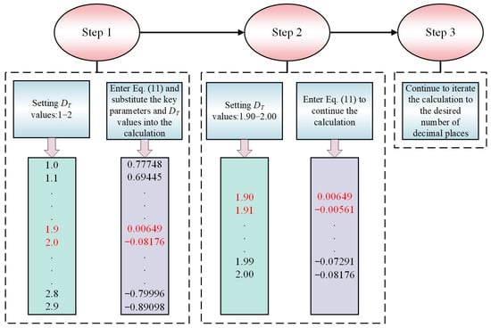 As shown in Equation (9), τav is a function of Df3, DT3, and lmin. Thus, taking the logarithm of Equation (9) yields an implicit expression for computing DT3, as shown in Equation (10). Equation (10) can be transformed into Equation (11).