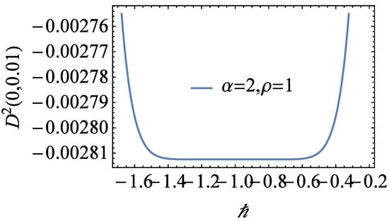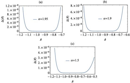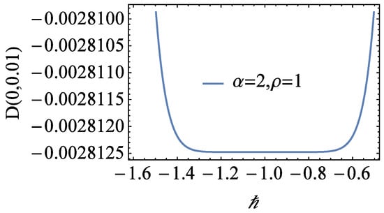 In this way, we can find the approximate solution with M terms in Equation (14). To determine the value of the convergent parameter, ℏ, we plot the ℏ-curve in Figure 1 and Figure 2 with , and . It is clear that in the region , the derivatives do not depend on ℏ. For simplicity, we choose . So, the HAM solution gives
