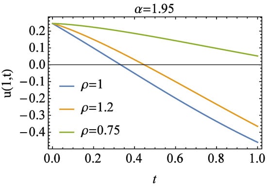 Based on the optimal values of ℏ, the detailed analysis contributes valuable insights into the behavior and sensitivity of the solutions under different parameter settings, which can be seen in Figure 7. It presents the HAM solution with fixed and and varying . Moreover, Figure 8 shows the effect of with fixed = 1 and . Both parameters affect the solution behavior of the equation.