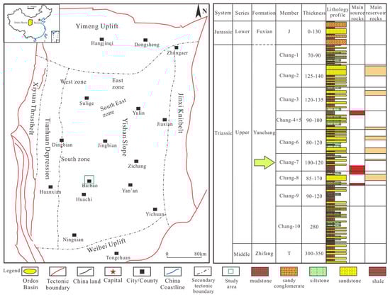 - Yang, H.; Fu, J.; He, H.; Liu, X.; Zhang, Z.; Deng, X. Formation and distribution of large low-permeability lithologic oil regions in Huaqing, Ordos Basin. Pet. Explor. Dev. 2012, 39, 683–691. [Google Scholar] [CrossRef]