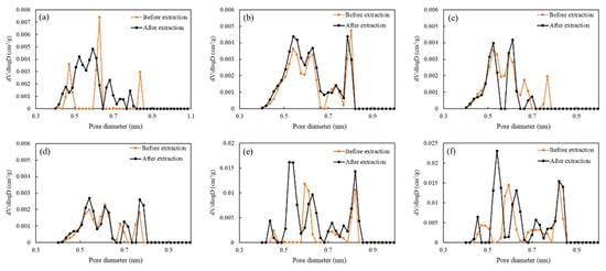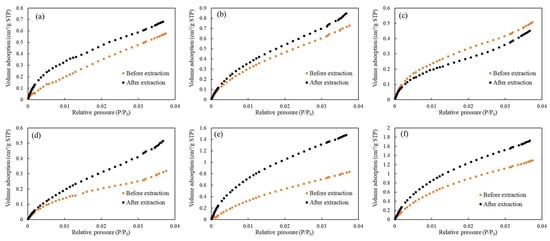 3.2. CO2 and N2 Adsorption before and after Soxhlet Extraction