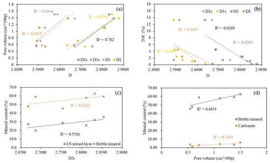 - Mishra, S.; Mendhe, V.; Varma, A.; Kamble, A.; Sharma, S.; Bannerjee, M.; Kalpana, M. Influence of organic and inorganic content on fractal dimensions of Barakar and Barren Measures shale gas reservoirs of Raniganj Basin, India. J. Nat. Gas Sci. Eng. 2018, 49, 393–409. [Google Scholar] [CrossRef]