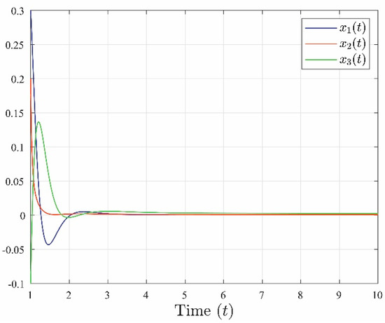 Drawing from Figure 1, it is evident that as time approaches infinity, all states converge towards zero. This observation confirms the validity of the outcome outlined in Theorem 1.
