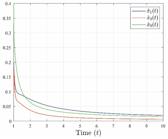 Figure 5 denotes the disparity between the evolution of the system states in system (23) and the observer state in Equation (10).