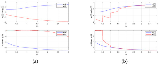 Evolution of FOFCNNs trajectory over time. (a) Evolution trend of system without controller; (b) Evolution trend of system with controller (5).