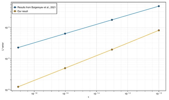 - Baigereyev, D.R.; Alimbekova, N.B.; Oskorbin, N.M. Error estimates of the numerical method for the filtration problem with Caputo-Fabrizio fractional derivatives. J. Math. Mech. Comput. Sci. 2022, 2, 101–116. [Google Scholar] [CrossRef]