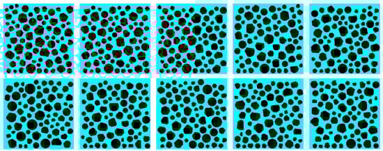 - Wang, Z.M.; Kwan, A.K.H.; Chan, H.C. Mesoscopic study of concrete I: Generation of random aggregate structure and finite element mesh. Comput. Struct. 1999, 70, 533–544. [Google Scholar] [CrossRef]
