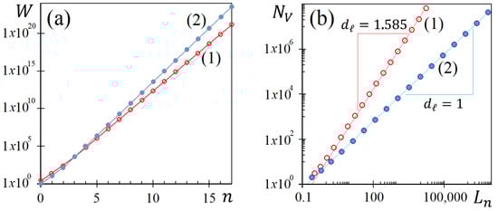 The topological difference between the pre-fractals and is obvious (compare shapes in Figure 1b and Figure 1c, respectively). In particular, the number of vertices in the pre-fractal is equal to: