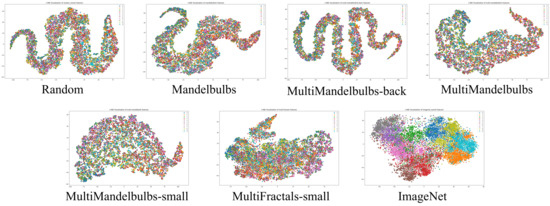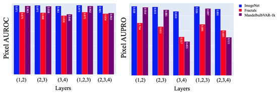 ). We used the official code (https://github.com/catalys1/fractal-pretraining accessed on 4 November 2024) from [15] for training since the authors did not release their pre-trained weights. Chiche et al. [17] released the code (https://github.com/RistoranteRist/MandelbulbVariationsGenerator accessed on 4 November 2024) for the dataset generation, which we used to create MandelbulbVAR-1k and MandelbulbVAR-Hybrid-21k. However, they did not provide their training code for the anomaly detection task. Therefore, we used the pre-trained weights of WideResNet50 that the authors made available for the analysis of performance with different AD methods.