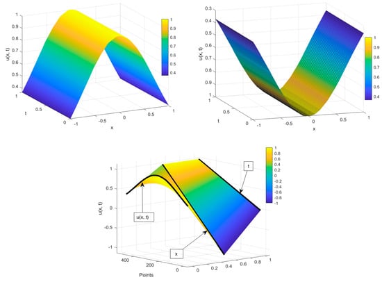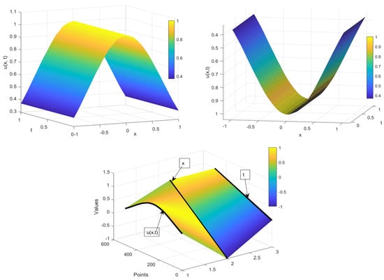 After performing and iterations, respectively. The residual error values are obtained, as shown in Table 7. These values are obtained by taking different points between the domains of and , while the value of the fractional parameter is . Table 7 shows the residual errors obtained from the proposed technique. The column of the table shows the input values. These values are obtained for the distribution of the domains of and into different points. The column of the table shows the input values. The column of the table represents the residual error values after iterations are performed. Similarly, the and columns show the residual error values after performing and iterations, respectively. Table 7 clearly shows that the residual errors are close to , ranging between and , which demonstrates that the proposed technique is a state-of-the-art, accurate, and valid technique.