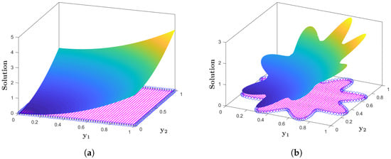 Despite the strength of analytical techniques, numerical techniques are still required for many real-world problems modeled by FDPDEs since they are excessively complicated for exact solutions. Numerical solutions are required due to high dimensional systems, nonlinearity, and the complexity of real-world problems. The numerical solution of FDPDEs has been studied extensively by numerous researchers. Various numerical techniques have been proposed, such as in []; the authors used the Chebyshev spectral collocation method for the numerical solution of FDPDEs. Hosseinpour et al. [] have developed a numerical scheme based on the Muntz–Legendre polynomials with the operational matrix of fractional differentiation to approximate DPDEs. The Adams–Bashforth–Moulton method combined with linear interpolation has been utilized by the authors of [] to approximate DPDEs. The authors of [] proposed radial basis functions (RBFs) for direct RBF collocation to approximate the solution to DPDEs. Singh [] proposed efficient Chebyshev polynomials and robust iterative solvers to obtain the numerical solution to DPDEs. Khana et al. [] developed a perturbation iteration algorithm for FDPDEs; they provided some numerical examples to validate their method. The authors of [] developed a robust spectral method for solving the FDPDEs. Farhood and Mohammed [] used the homotopy perturbation method to solve variable-order nonlinear FDPDEs. Further, they discussed the convergence of the method.