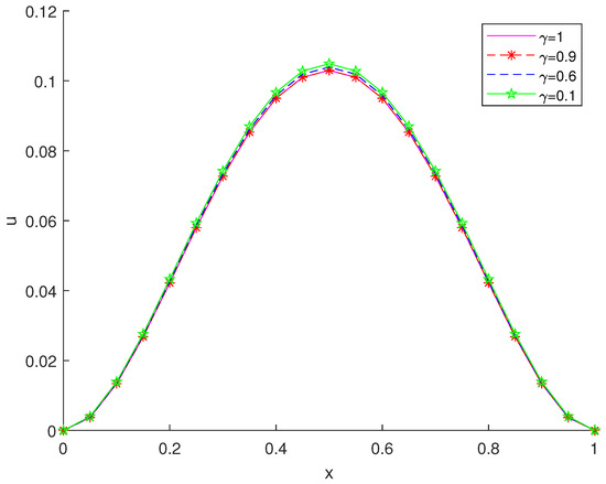 When , Equation (1) will be a Riesz space distributed-order advection–diffusion equation without delay. In addition, the order of the advection is close to 1, and here we assume that disappears outside the interval (1/2,1).