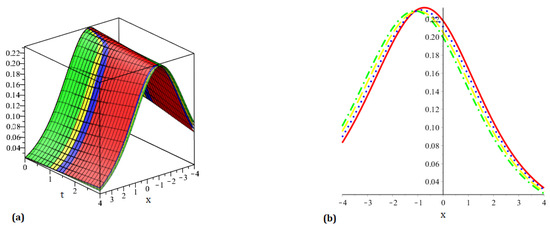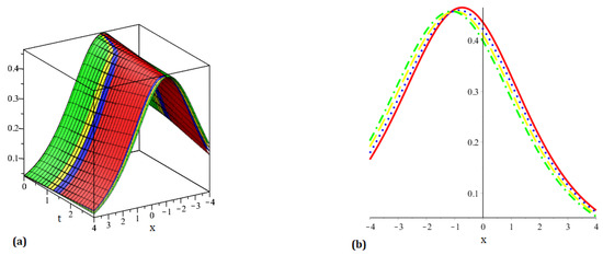 Plot (a) representing 3D behavior of our approaches solution (b) representing 2D behavior of our approaches solution at different orders of for .