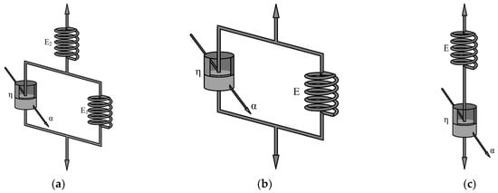 The three-parameter solid model and the Kelvin and Maxwell models are depicted in Figure 2. These models comprise springs and Newtonian clay pots. In the case of the Abel clay pot, it degenerates to a Newtonian clay pot when α = 1.